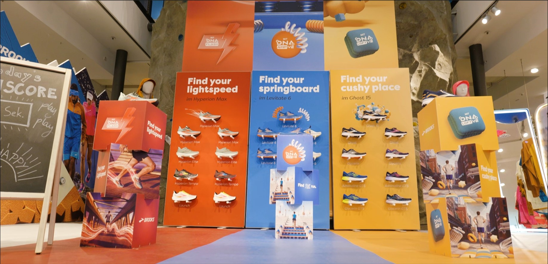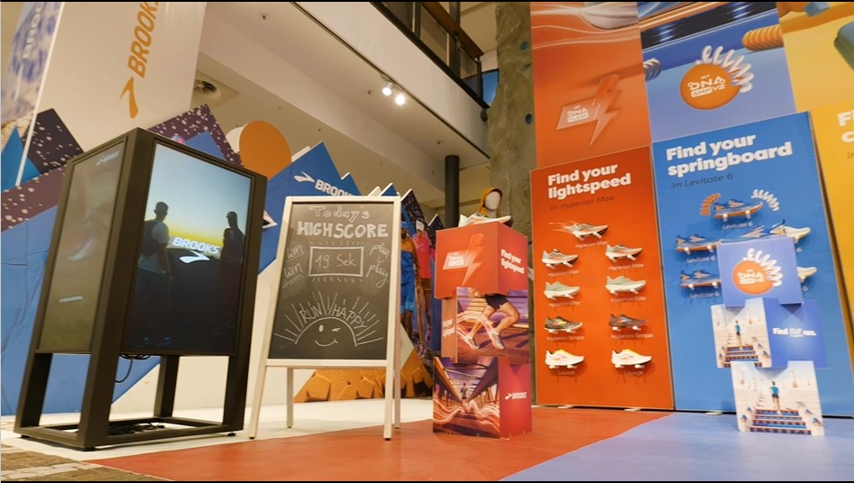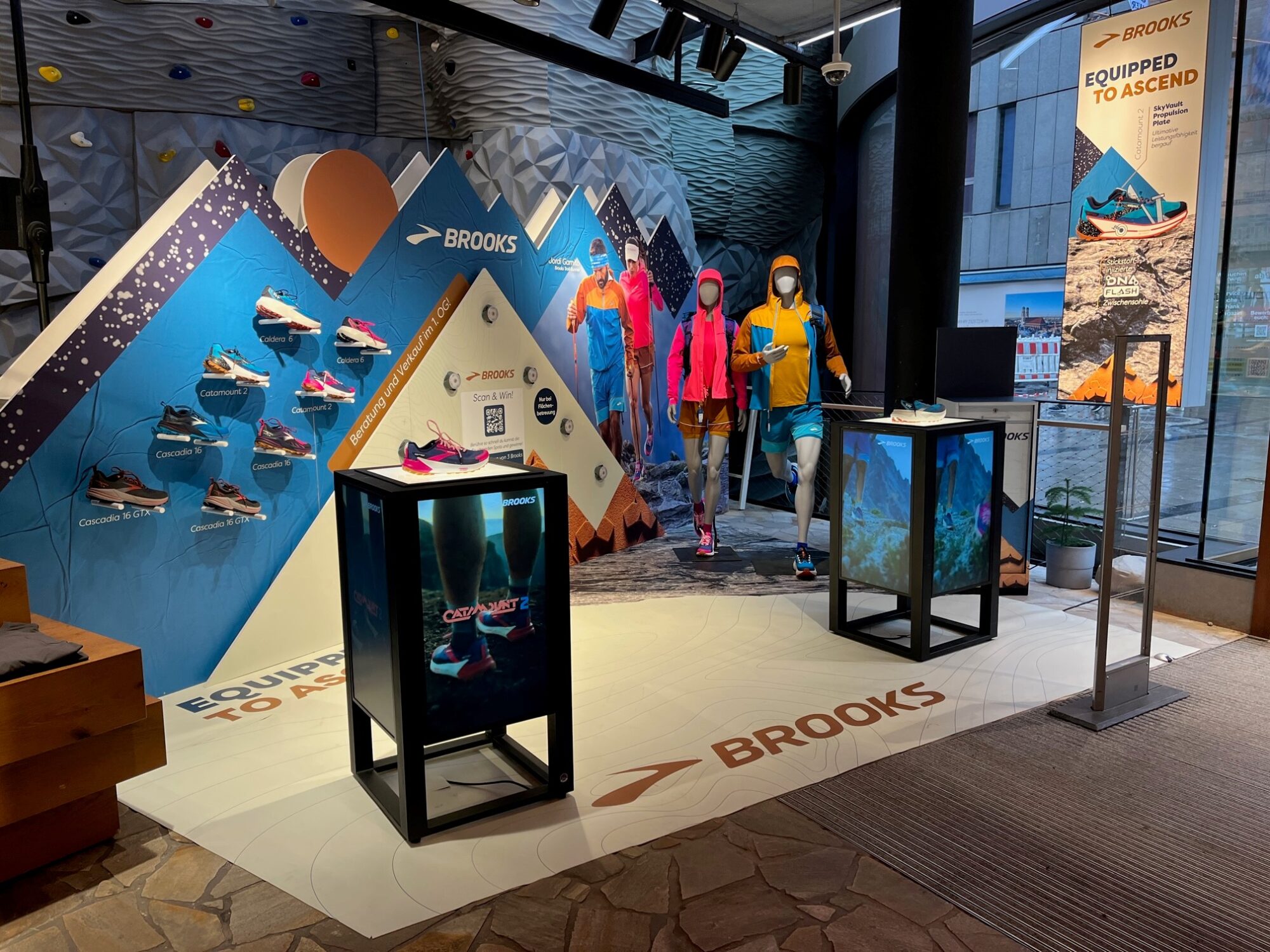 The physical storefronts were transformed into immersive hubs of brand exploration, featuring interactive and educational elements strategically positioned to showcase Brooks’ innovative shoe technology. Through interactive, gamified displays, customers engaged more deeply with the brand in-store. These experiences seamlessly transitioned to social media—extending the campaign’s reach and building a sense of community among online audiences.