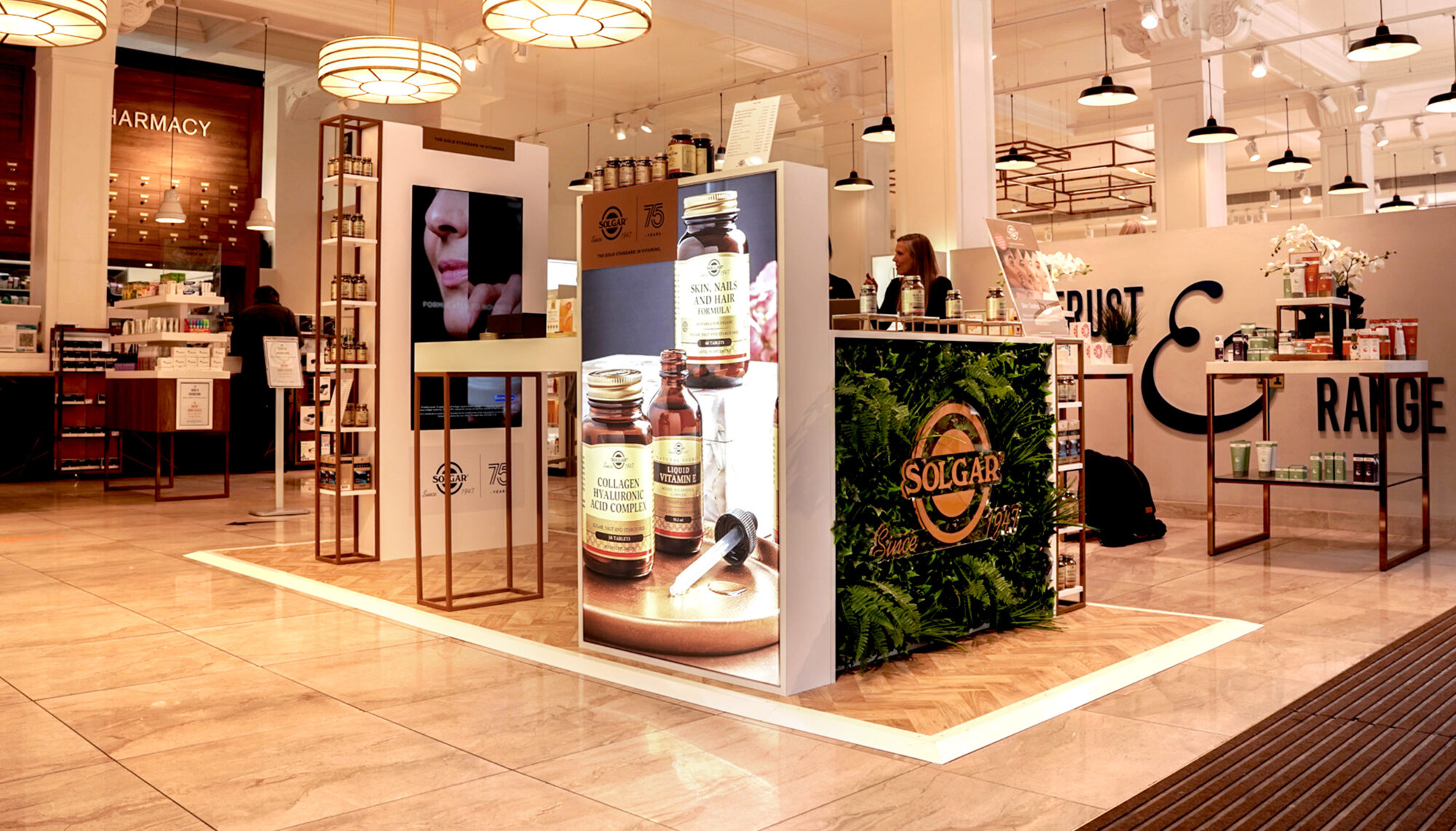 To celebrate Solgar’s 75th anniversary, ISI Global designed a striking pop-up installation for their beauty supplement line, positioned at the entrance of John Bell & Croydon Pharmacy in London.