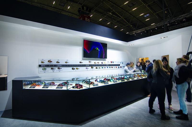 To connect with Oakley’s legacy, the back of the stand featured a heritage wall, showcasing the brand’s iconic goggle timeline. This visually striking display narrated Oakley’s evolution, deepening the storytelling and offering visitors a tangible link to the brand’s history.
